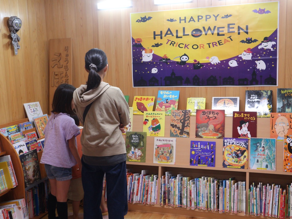 現在のりゅうもんぶんここどもライブラリーには、ハロウィンに関する絵本が多く配架されています✨